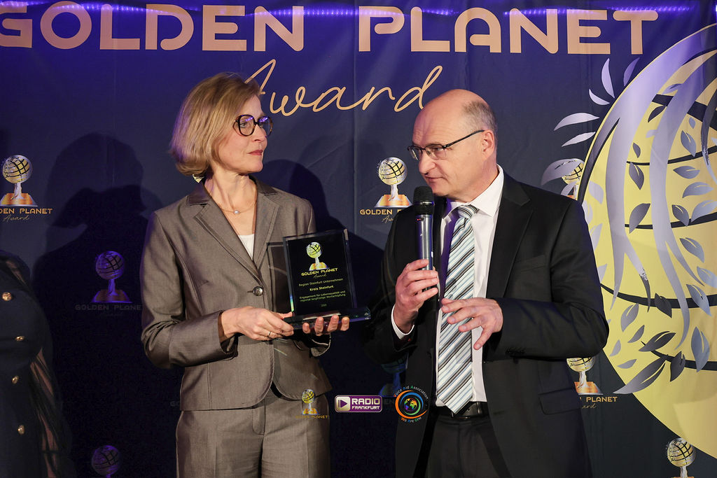 Frankfurt. Wenn Überzeugung, Tatkraft und Gemeinschaftsgeist zusammenkommen, entsteht Strahlkraft – und genau das verkörpert der Kreis Steinfurt. Bei der festlichen Verleihung des Golden Planet Award 2025 in den Skyline Studios von Radio Frankfurt wurde die westfälische Region für ihr jahrzehntelanges Engagement im Klimaschutz und ihre beispielhafte Nachhaltigkeitsstrategie ausgezeichnet.